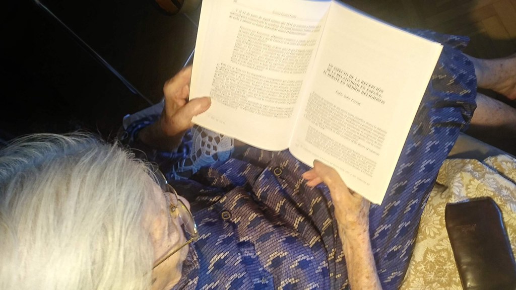 Osiem lat później w dniu 31 lipca 1962r., w roku mojej pierwszej komunii, grając w pięknym placu ’33 rur’ na przeciw mojego domu w Alcañiz, znalazłem małą czarną i nową książkę samotnie leżącą na ławce, nikogo nie było. Nie wiem właściwie dlaczego ją otworzyłem. Zdałem sobie sprawę, że była to książka religijna, nie za bardzo mnie zainteresowała i zostawiłem ją znowu na ławce. Natomiast kiedy skończyłem zabawy i musiałem wrócić do domu widziałem, że mała książeczka ciągle leżała samotnie na ławce, a więc zdecydowałem się i wziąłem ją ze sobą by podarować mojemu tacie.